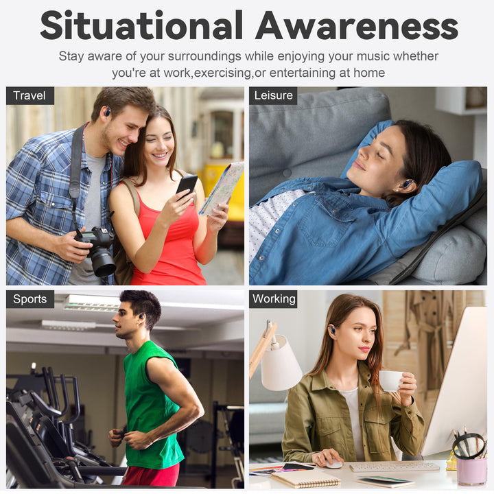 AHANSI Open Ear Headphones, Bluetooth Headphones 5.4 Sports with Smart Digital Display, 80H Playtime