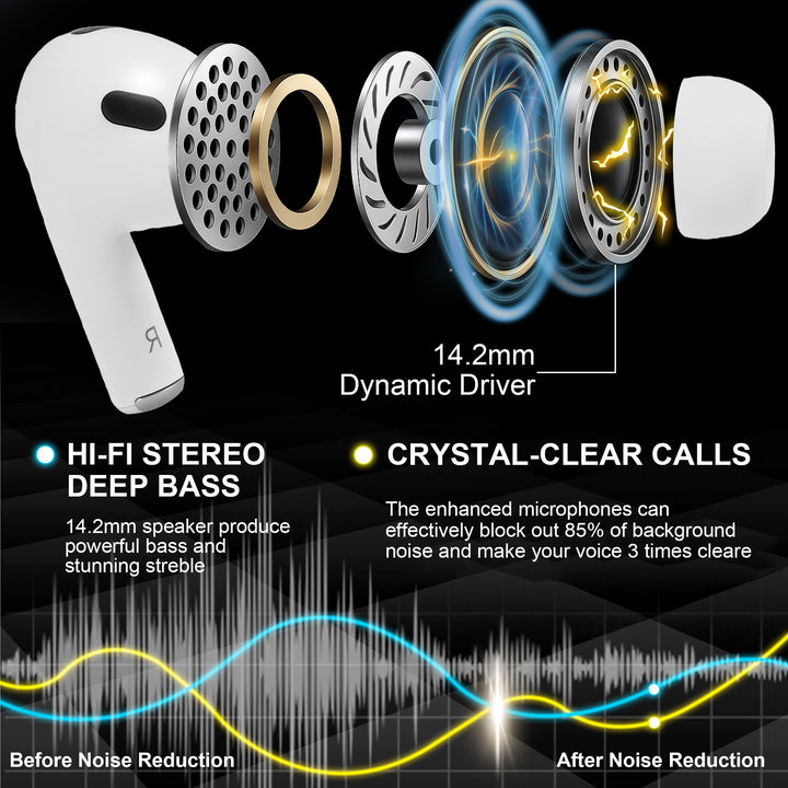 AHANSI Wireless Headphones with Multifunctional Touch Screen ANC/ENC Noise Cancelling Headphones with 35H Playtime