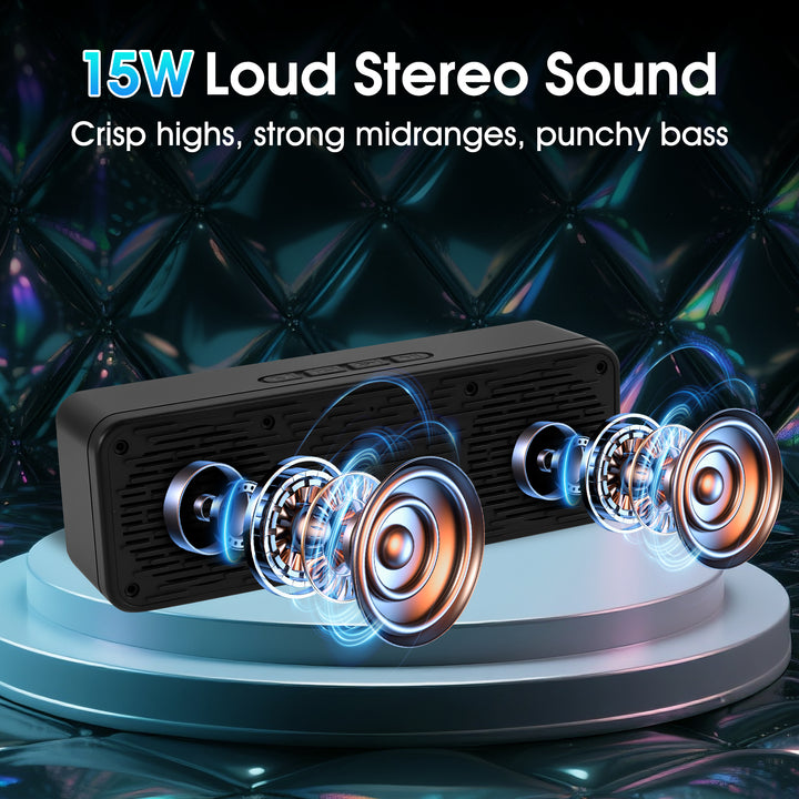 AHANSI S19 Wireless Bluetooth Speaker cranks up your audio game! Experience booming 15W sound with dual drivers for deep bass, rich mids, and crystal-clear highs—zero distortion. Pair two speakers via Bluetooth 5.2 for immersive stereo and doubled volume. Perfect for beach parties, camping, or backyard BBQs. Rock 20-hour playtime, (toggle via button), and hands-free calls. Gift-ready for adventurers, music lovers, and party starters!