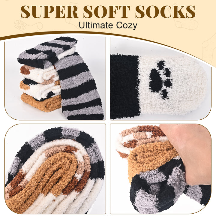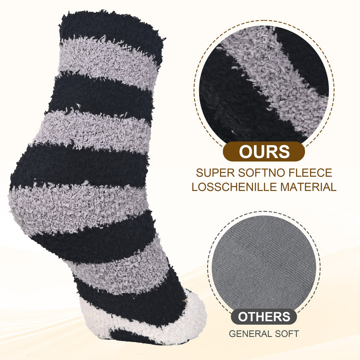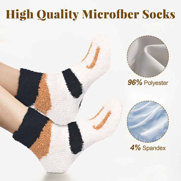 Women's Ultra Soft Warm Microfiber Stretch Fluffy Winter Socks are made of 95% polyester and 5% spandex. These women's plush socks come in standard US sizes and fit US shoe sizes 5 - 10.Studies have shown that wearing sleep socks to bed helps you fall asleep faster and can also promote more restful sleep. This pair of stylish, comfortable, sweet, cute, warm, and cozy women's mid-calf socks is the perfect gift for your wife, daughter, girlfriend, friend, or colleague
