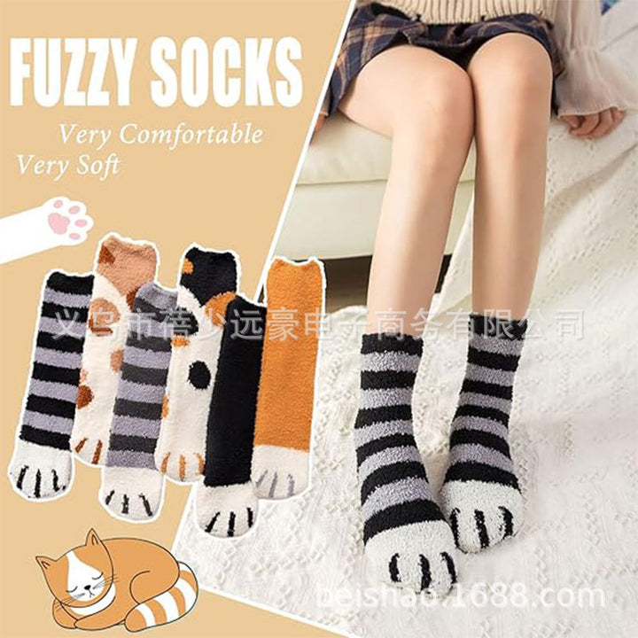 Heating Women Fuzzy Socks Cute Cat Thick Warm Sleeping Postpartum Socks