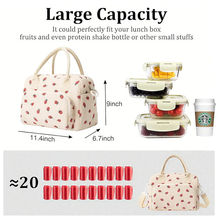 - 【Large Lunch Bag】11L lunch box for women measures 11.4"L x 9"H x 6.7"W, made of quality material.It's spacious enough to easily fit an ice pack, lunch box, snacks, cutlery, drinks, and even some fruit without feeling cramped.