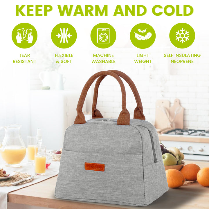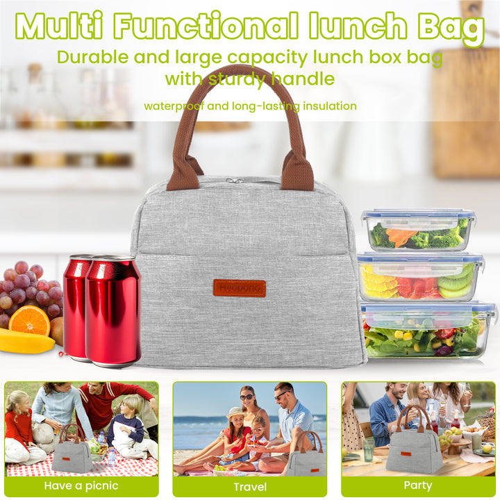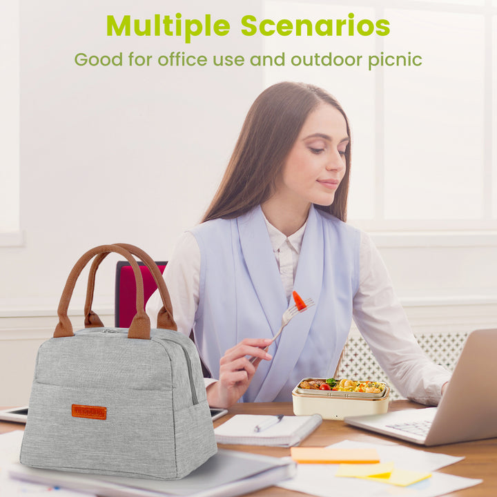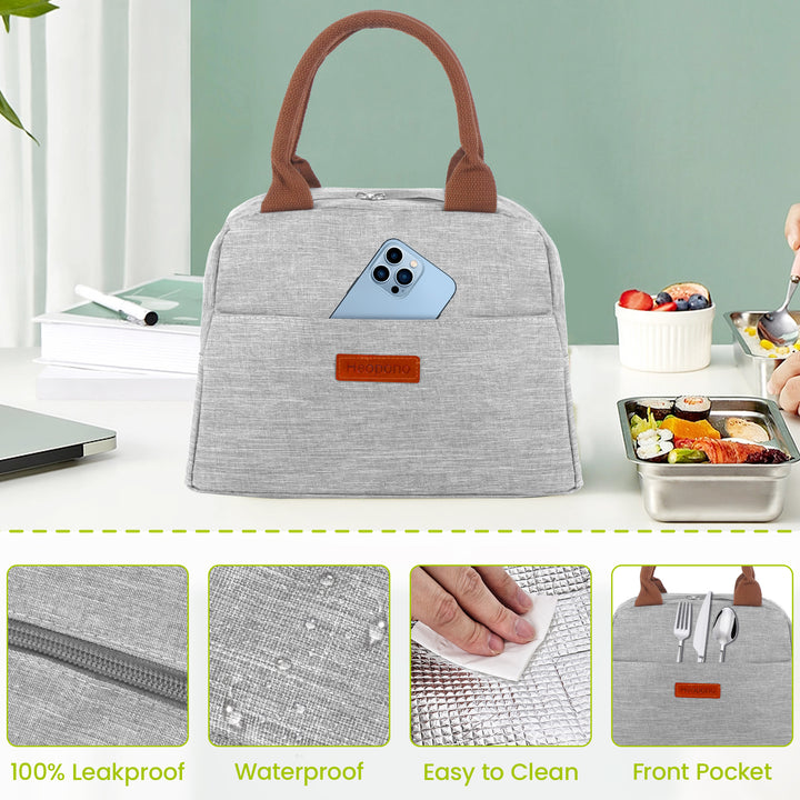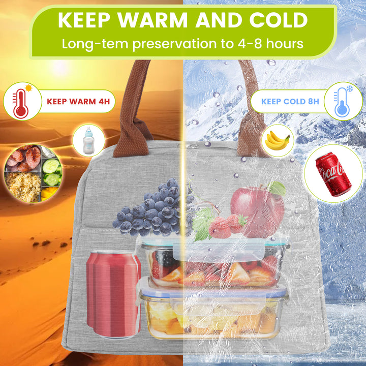 Insulated Lunch Box for 5 years and up, with triple insulation design, can keep food cold/hot/fresh for hours, allowing you to prepare a full meal anytime, anywhere. The inner lining of the insulated lunch bag is environmentally friendly FDA waterproof high-quality soft aluminum foil, and the outer layer is 600D Oxford waterproof cloth. The durable padded handle ensures long-term use. The large front pocket design is convenient for you to place bus cards, keys, mobile phones and other small items.