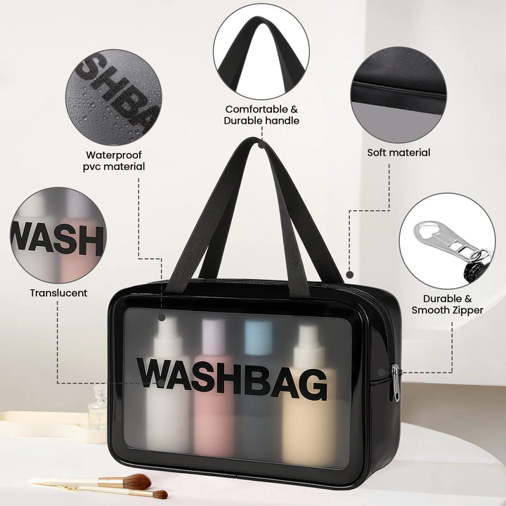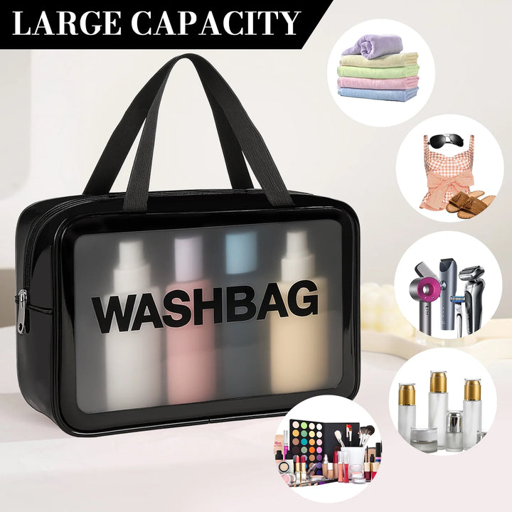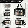 - 5-Piece Cosmetic Bags for Women Set. This versatile collection includes a large makeup bag, a perfect travel bag for toiletries, mini makeup bags, and small pouches for ultimate organization. It's the ideal makeup case and toiletries travel bag for traveling women, offering smart clothing storage solutions on the go