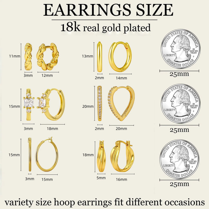 MiracDan 6 Pairs 18K Gold Plated Earrings for Women Unique Chic Add a Touch of Luxury to Your Look
