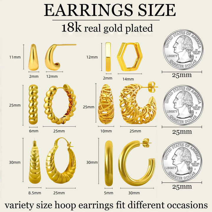 MiracDan 6 Pairs 18K Gold Plated Hoop Earrings for Women - Durable Gold Plated Hoops, Everyday Jewelry Gift
