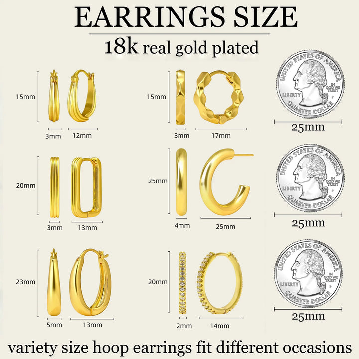MiracDan 6 Pairs 18K Gold Plated Hoop Earrings Set for Womens