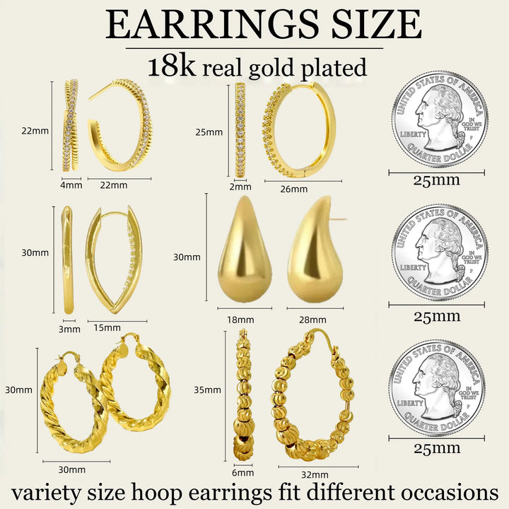 MiracDan 6 Pairs Gold Hoop Earrings for Women, 18K Gold Plated Small to Large, Everyday Jewelry Set