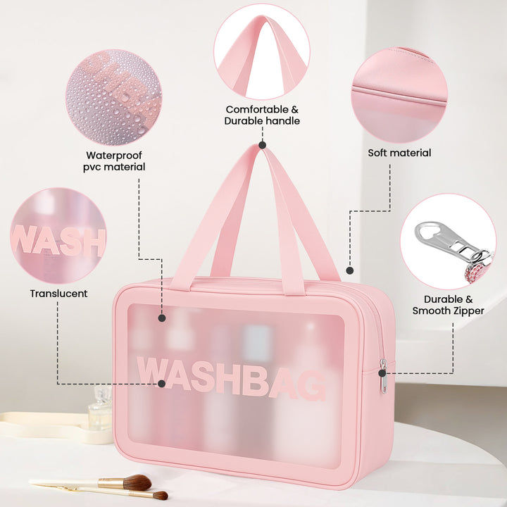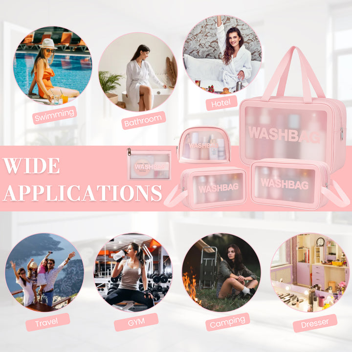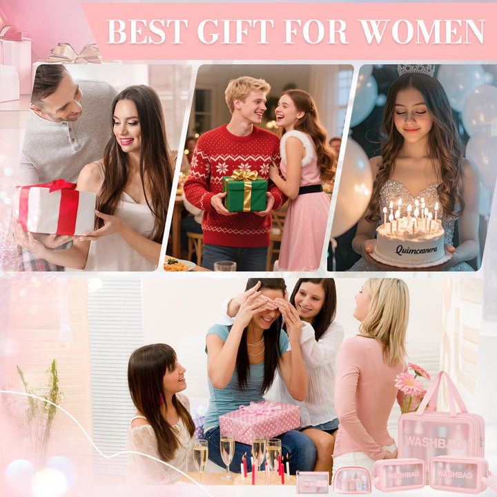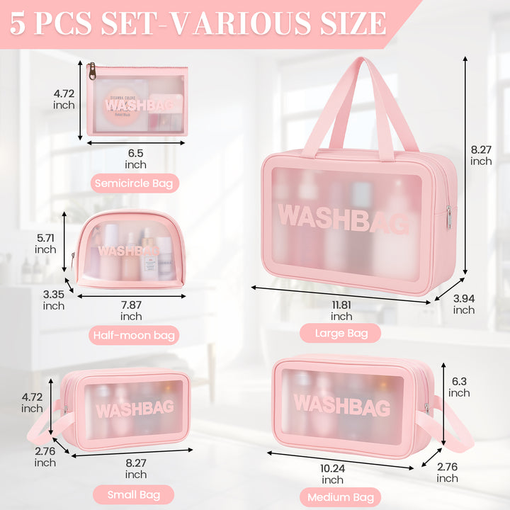 - 5-Piece Cosmetic Bags for Women Set. This versatile collection includes a large makeup bag, a perfect travel bag for toiletries, mini makeup bags, and small pouches for ultimate organization. It's the ideal makeup case and toiletries travel bag for traveling women, offering smart clothing storage solutions on the go