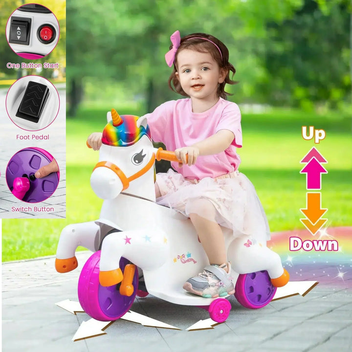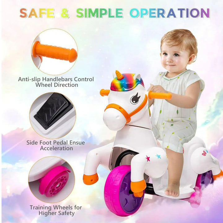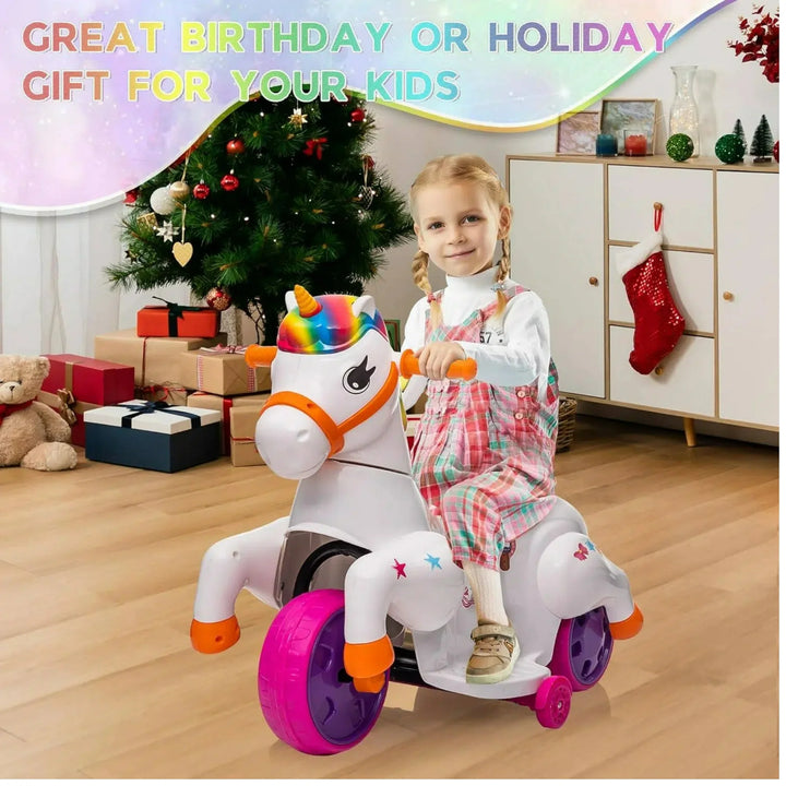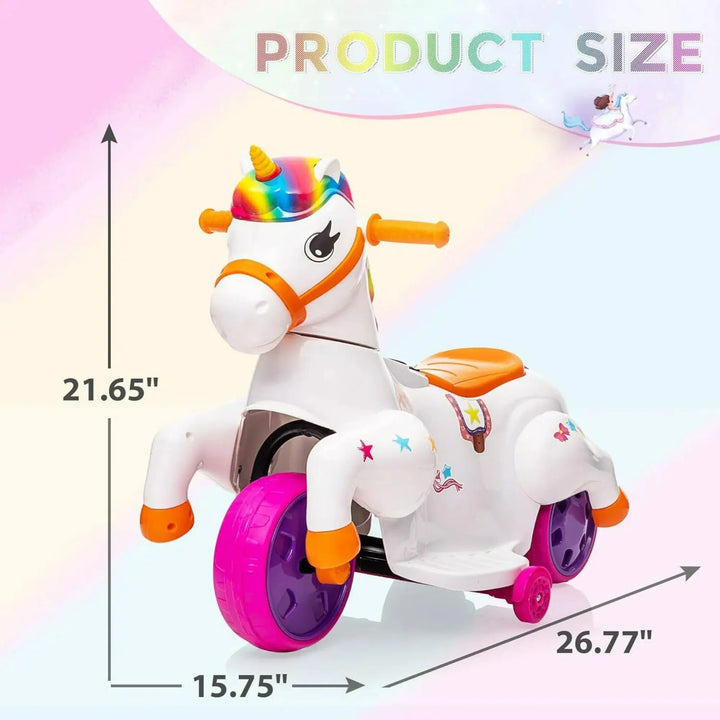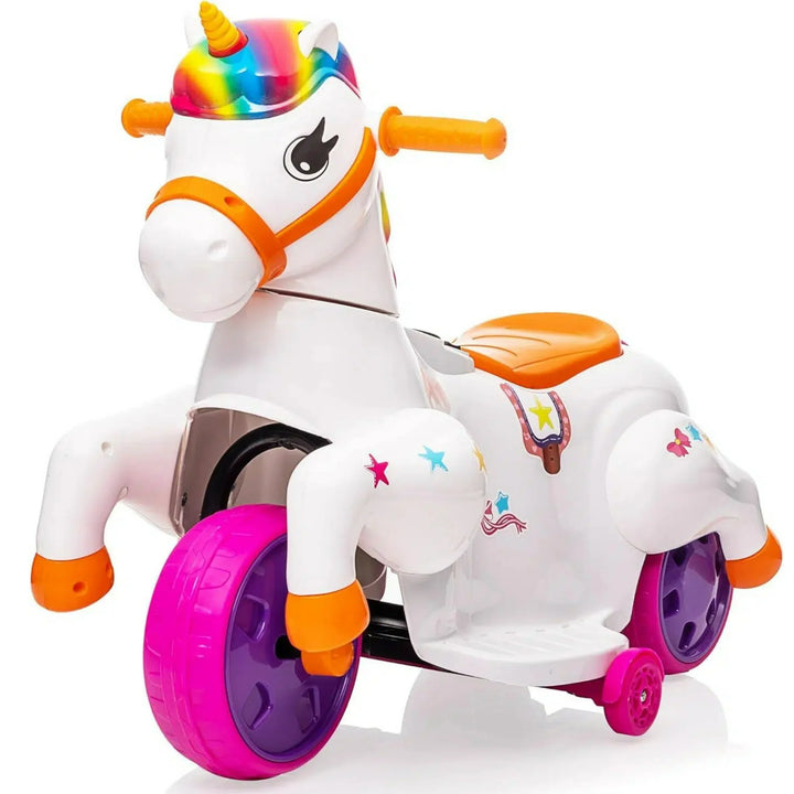 TRANSLINK 12V kids unicorn ride on toy electric motorcycle with bumpy ride on function music battery indicator training wheels