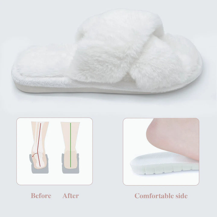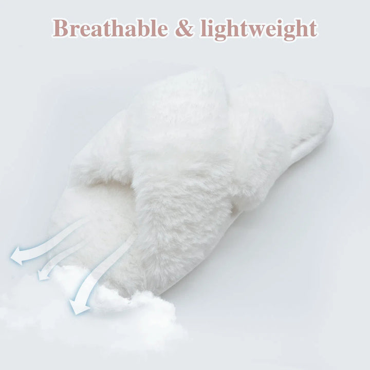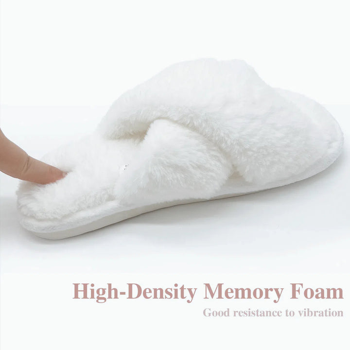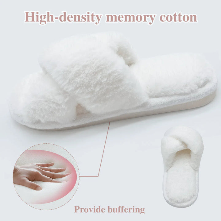 TRANSLINK 2Pairs Womens Slipper with Cross Band Memory Foam Fluffy Soft Warm Slip On House Slippers for Indoor Outdoor