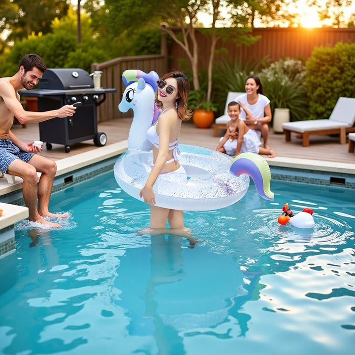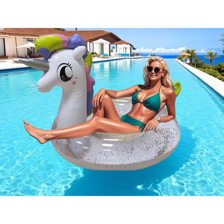 Make your pool time magical with this vibrant Unicorn Pool Float! Designed for both kids and adults, this inflatable float features a colorful, fun unicorn design with a comfortable seat and sturdy construction. Ideal for pool parties, beach trips, or just relaxing in the sun, it offers both fun and comfort. With easy inflation and deflation, it’s portable and perfect for summer adventures. Ride the waves in style with this must-have pool float!