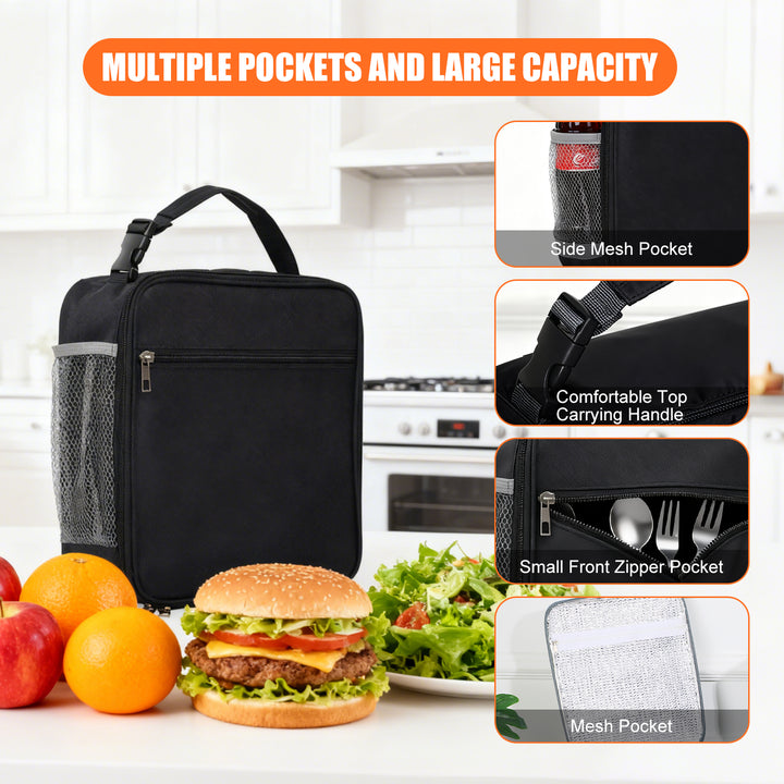 TRANSLINK Insulated Lunch Box for Men Women LeakProof Cooler Lunch Bag with 4 Pockets Ideal for Work Picnic Travel Black