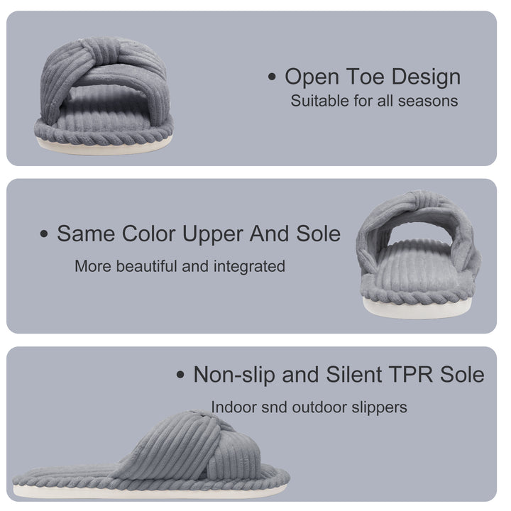 - 【Simple, Elegant Design】: Featuring a minimalist crisscross strap design and premium corduroy fabric with precision stitching for a premium feel. The open-toe construction ensures breathability and easy on/off, making them suitable for all-season wear.