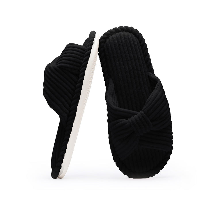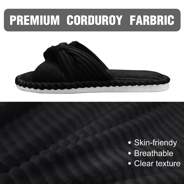 TRANSLINK Open Toe Slippers Memory Foam Comfort Corduroy Crossbands Perfect Gift for Women