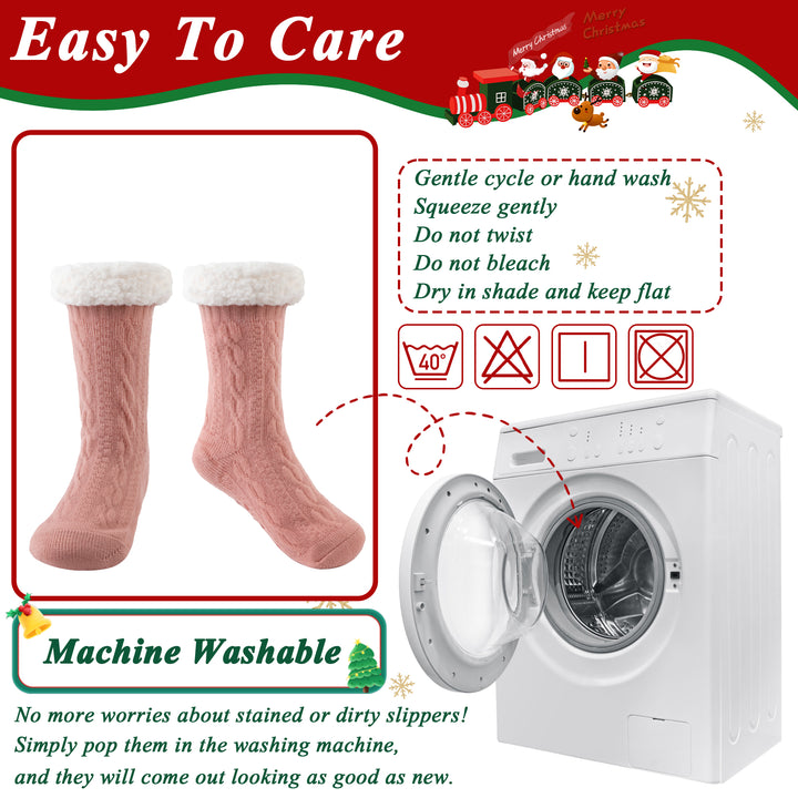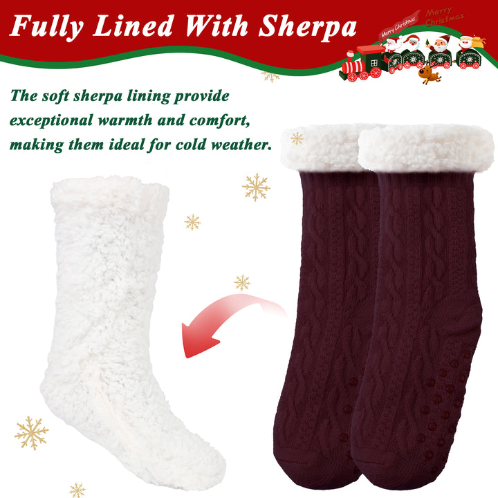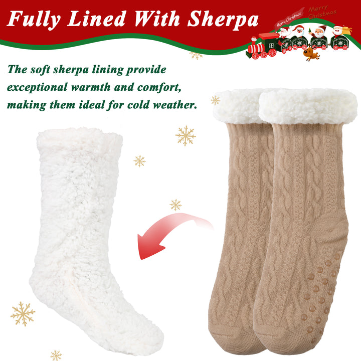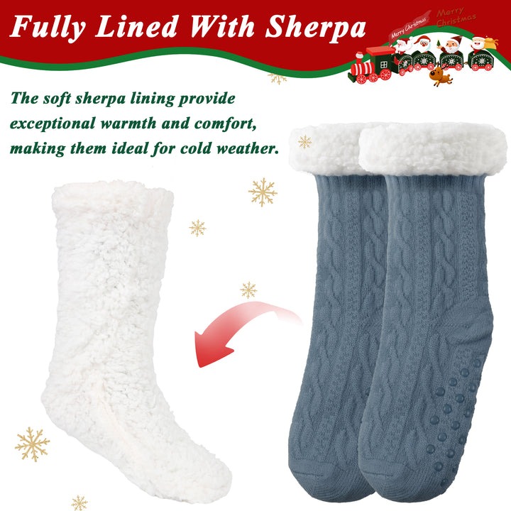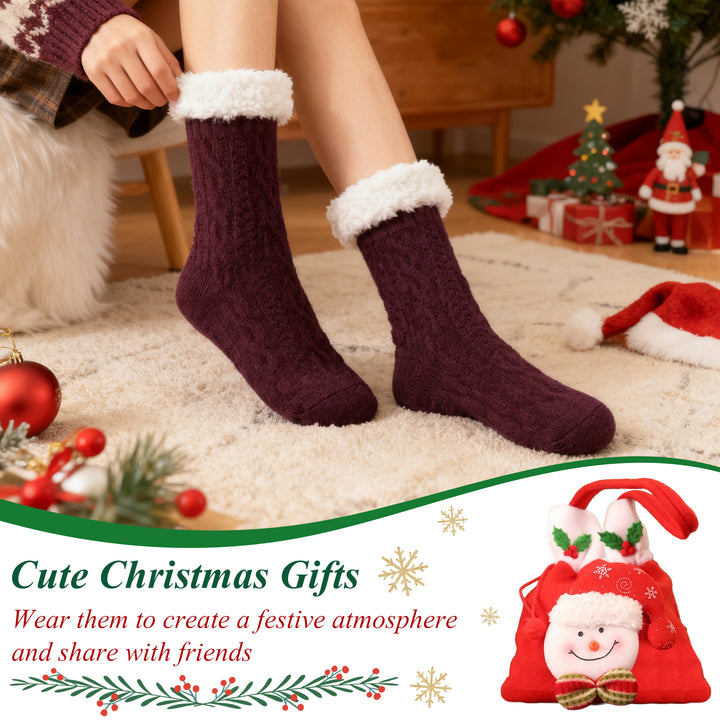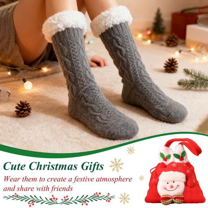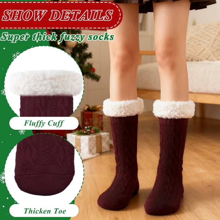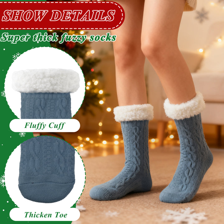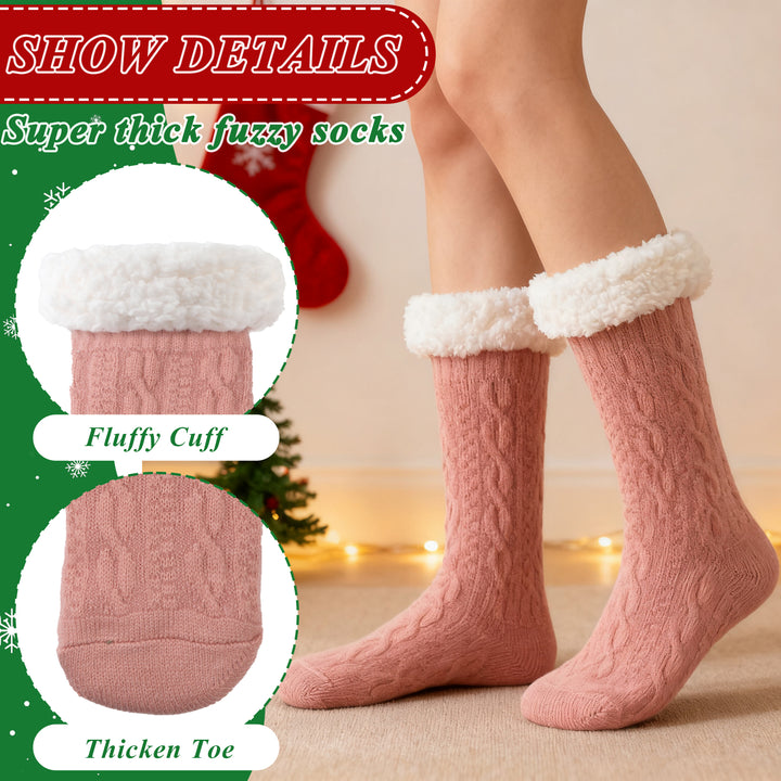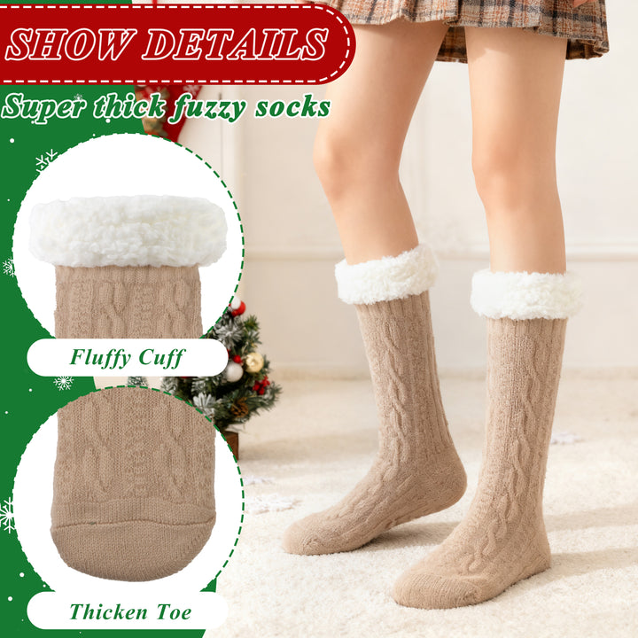 TRANSLINK Slipper Socks for Women with Gripper Winter Non Slip Thick Fuzzy Socks Warm Cozy Christmas Gift