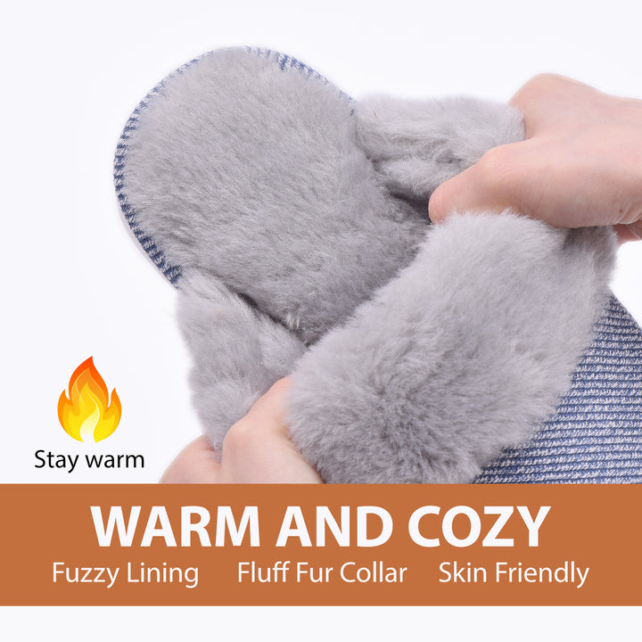 - 【Warm and comfortable】: Feet immersed in the double-layer luxury design of women's fuzzy slippers - wool-like faux wool lining with breathable suede and fluffy neckline.