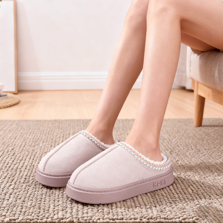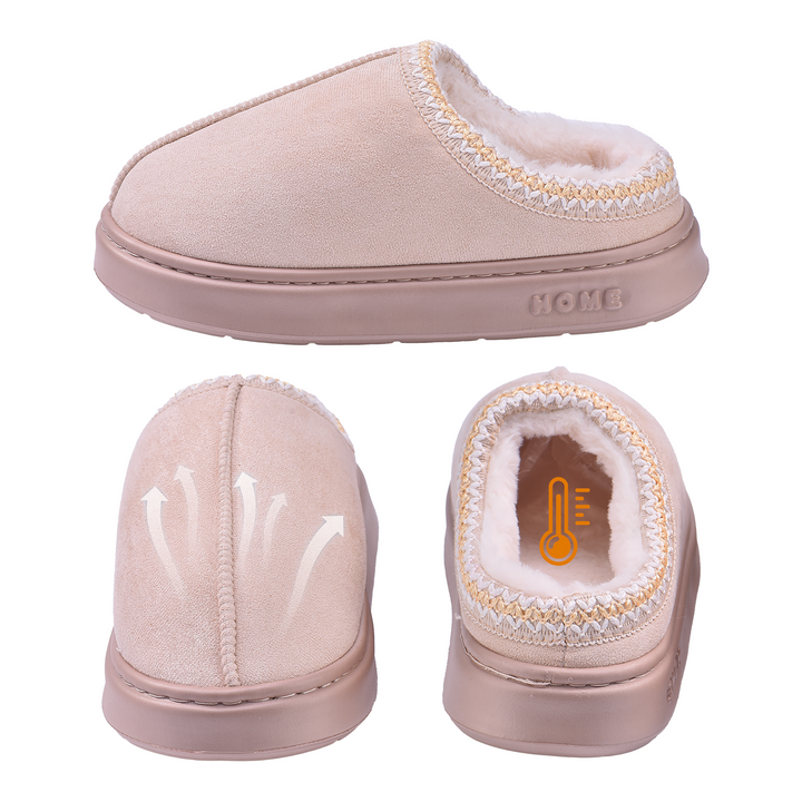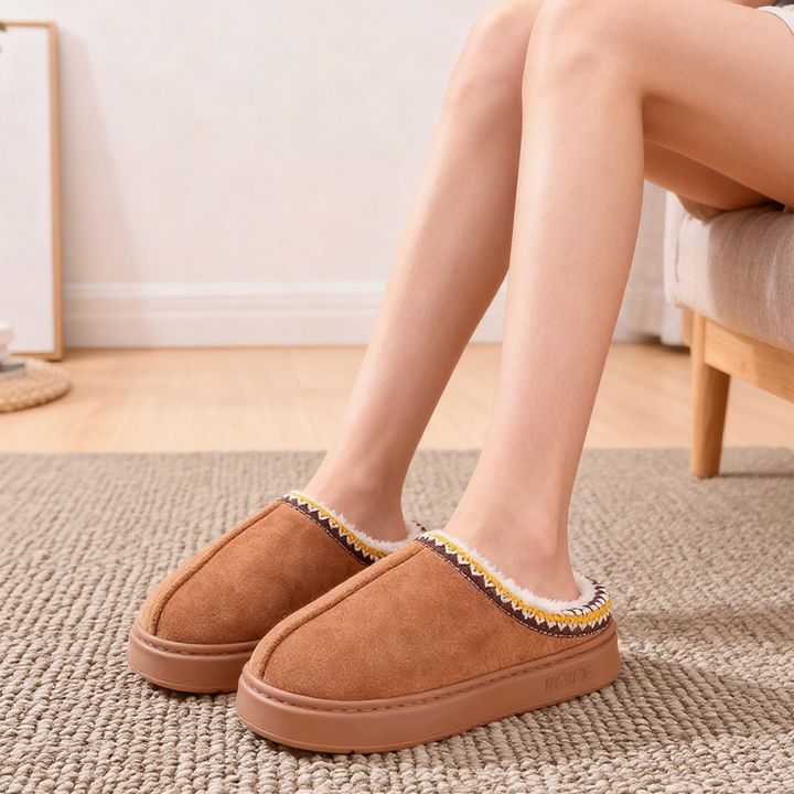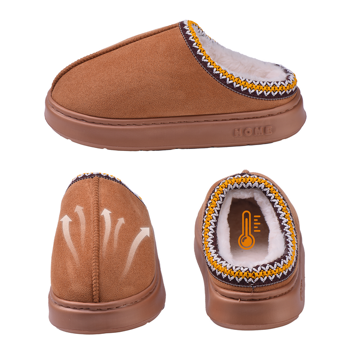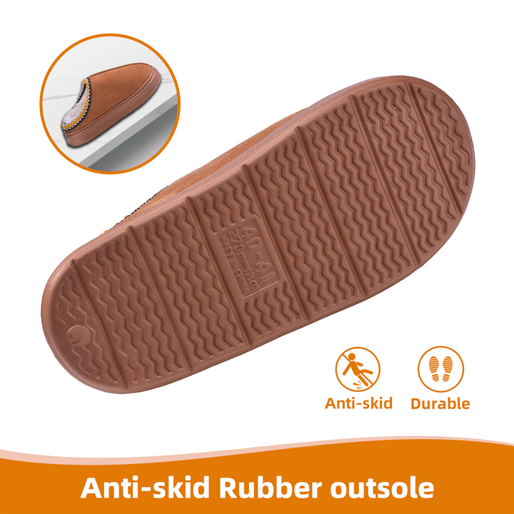 - [Durable Suede Upper]: Crafted with a classic suede upper and adorned with embroidered trim these slippers offer a stylish look. These slippers for women are designed for long-lasting wear.