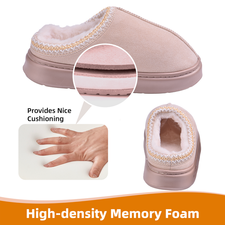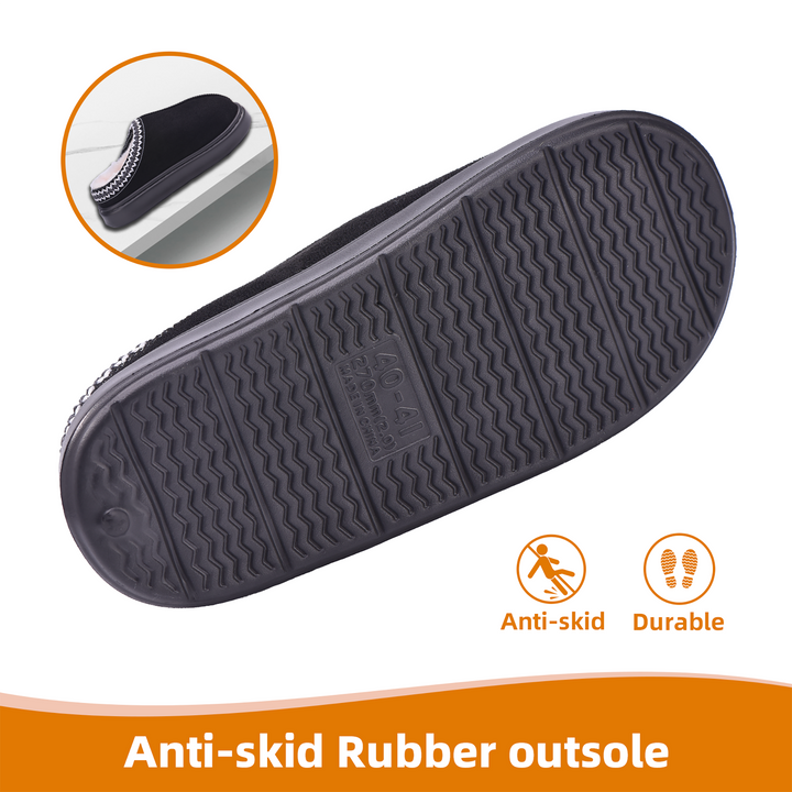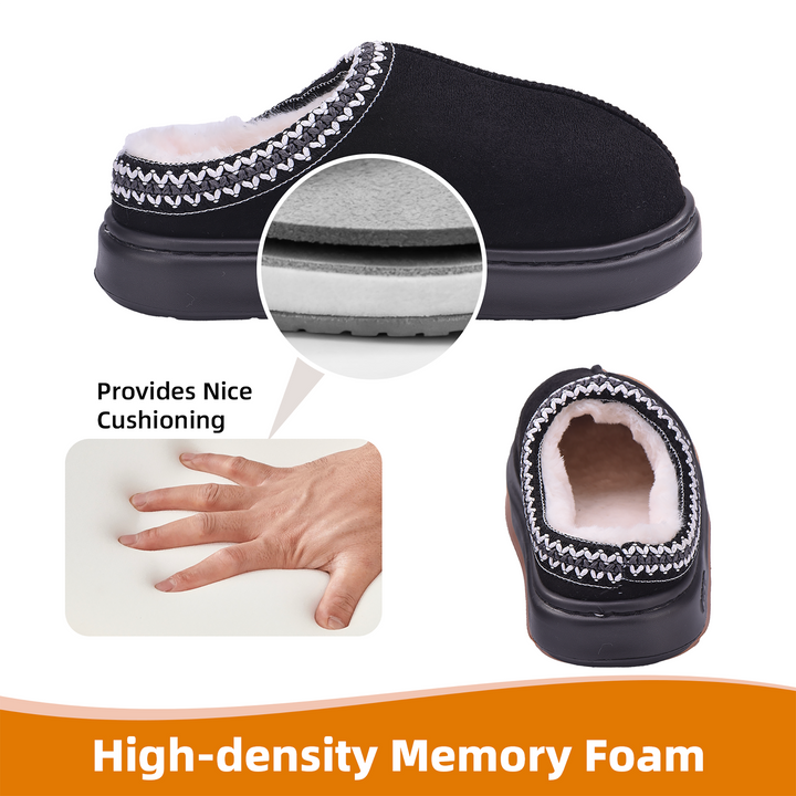 - [Memory foam cushioning]: Featuring 0.6-inch high-density memory foam, the house shoes ensure a personalized fit and all-day comfort for you. The impressive thick memory foam footbed provides exceptional cushioning and a luxurious feel.