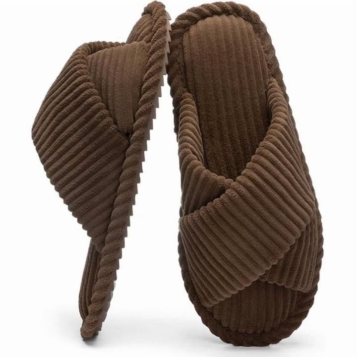 - Effortless elegance: Featuring minimalist cross-strap design with premium corduroy fabric, our slippers reveal sophisticated texture through meticulous stitching. The open-toe construction ensures breathability and easy slip-on, making them versatile for year-round comfort.