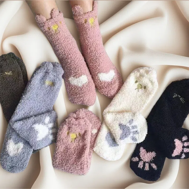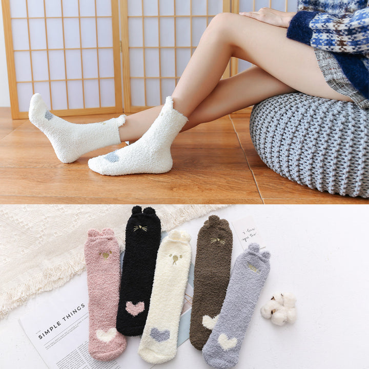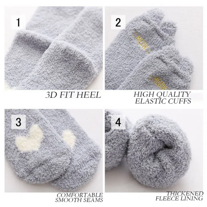 Women's Ultra Soft Warm Microfiber Stretch Fluffy Winter Socks are made of 95% polyester and 5% spandex. These women's plush socks come in standard US sizes and fit US shoe sizes 5 - 10.Studies have shown that wearing sleep socks to bed helps you fall asleep faster and can also promote more restful sleep. This pair of stylish, comfortable, sweet, cute, warm, and cozy women's mid-calf socks is the perfect gift for your wife, daughter, girlfriend, friend, or colleague.