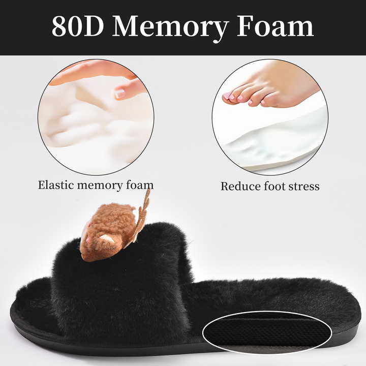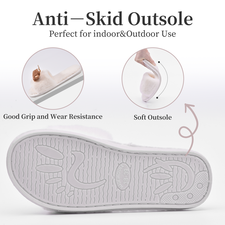 - FASHION ELEGANT: Breathable open-toe along with trendy faux fur design makes these womens slippers stylish and practical. Easily slides in whenever you want your feet relaxed.